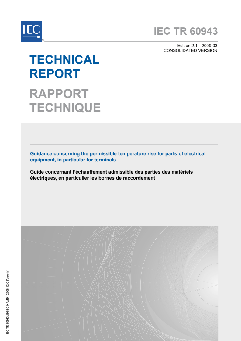 IEC/TR 60943:1998+A1:2009 is intended for guidance in estimating the permissible values for temperature and temperature rise of component parts of electrical equipment carrying current under steady state conditions. The present report is intended to supply: