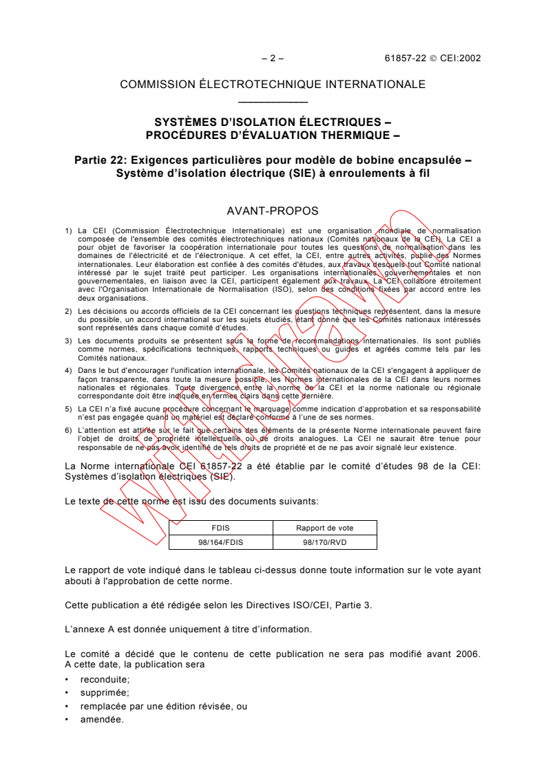 Keywords: IEC 61857-22, encapsulated coil model, electrical insulation systems, wire-wound insulation, thermal evaluation, encapsulating material, electrical insulating material, electrical insulation testing, thermal assessment, electrical insulation standards, encapsulation process, bobbin, coil winding, interwinding insulation, insulation system evaluation.
