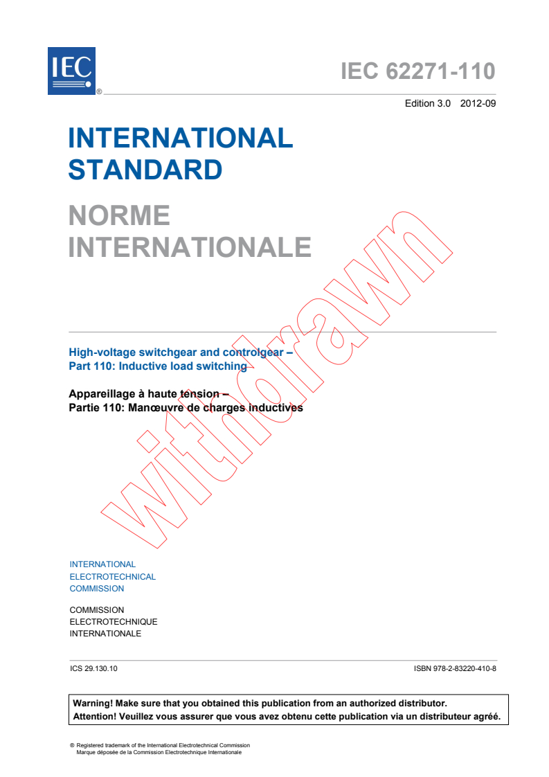 IEC 62271-110:2009 - High-voltage switchgear and controlgear - Part 110: Inductive load switching - Effective Date