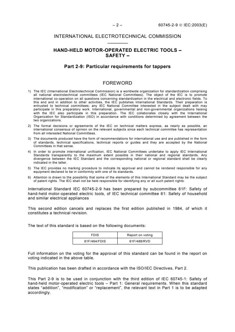 IEC 60745-2-9:2003 - Hand-held motor-operated electric tools - Safety - Part 2-9: Particular requirements for tappers