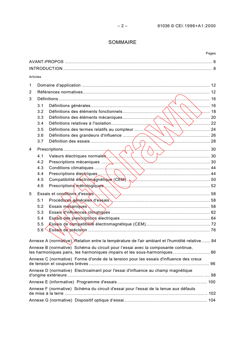 IEC 61036:1996 - Alternating current static watt-hour meters for active energy (Classes 1 and 2) Released:9/26/1996