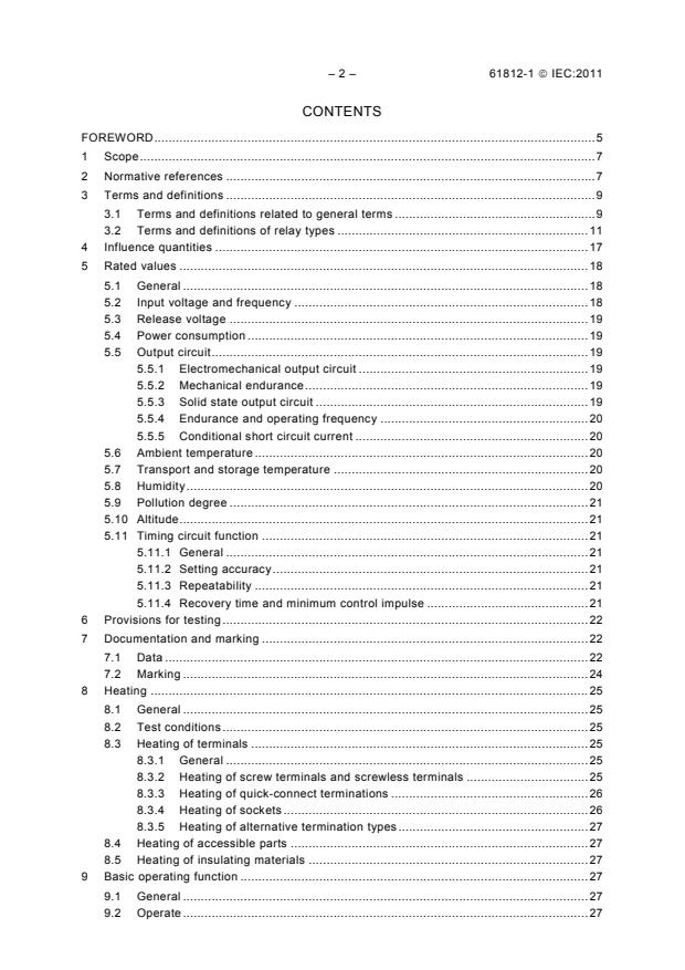 IEC 61812-1:2011 is a standard published by the International Electrotechnical Commission (IEC). Its full title is "Time relays for industrial and residential use - Part 1: Requirements and tests". This standard covers: IEC 61812-1:2011 applies to time relays for industrial applications (e.g. control, automation, signal and industrial equipment). It also applies to time relays for automatic electrical controls for use in, on, or in association with equipment for residential and similar use. This edition includes the following significant technical changes with respect to the previous edition: - addition of terms and definitions more commonly used by industry; - addition of timing charts to help explain terms and definitions involving a sequence of events; - addition of provisions for residential use.