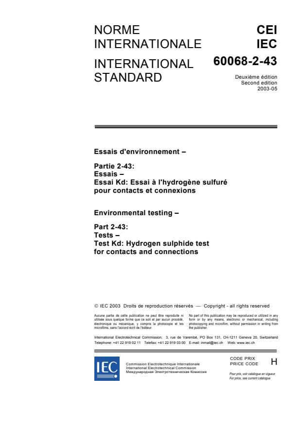 (Main)Environmental testing - Part 2-43: Tests - Test Kd: Hydrogen sulphide test for contacts and connections