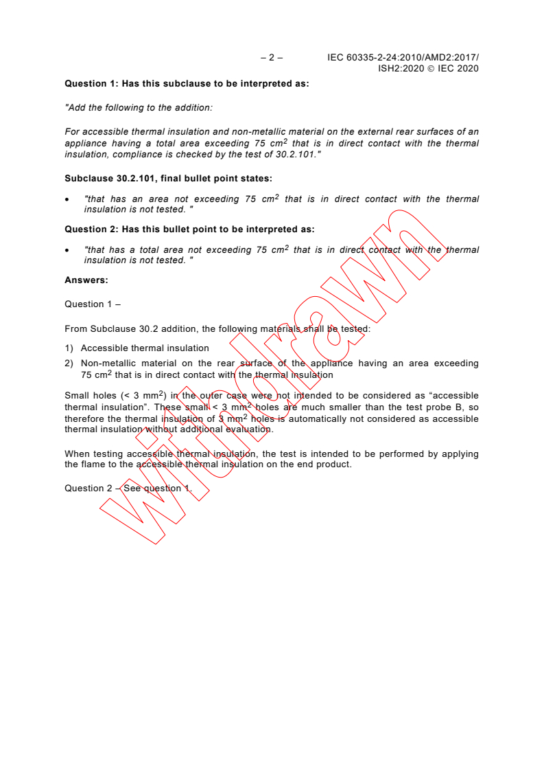 IEC 60335-2-24:2010/AMD2:2017/ISH2:2020 - Interpretation sheet 2 - Amendment 2 - Household and similar electrical appliances - Safety - Part 2-24: Particular requirements for refrigerating appliances, ice-cream appliances and ice makers Released:3/30/2020