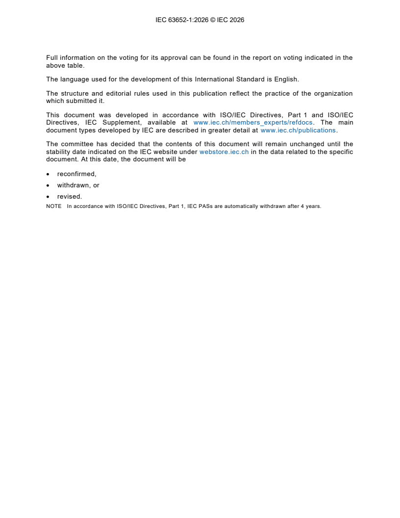 IEC 63652-1:2026 is available in PDF format for immediate download after purchase. The document can be added to your cart and obtained through the secure checkout process. Digital delivery ensures instant access to the complete standard document.