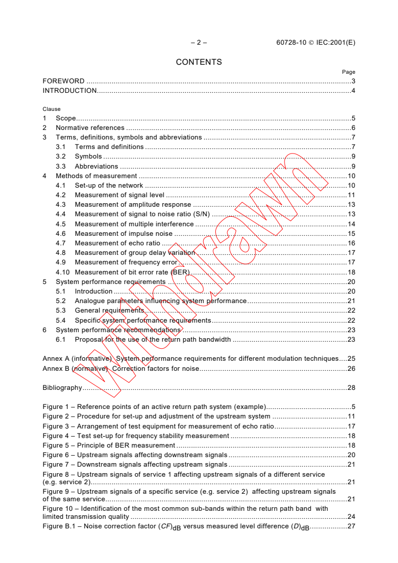 Keywords: IEC 60728-10, return path, upstream, cable networks, 5–65 MHz, BER, ingress noise, impulse noise, S/N, echo ratio, CATV, HFC, measurement methods.