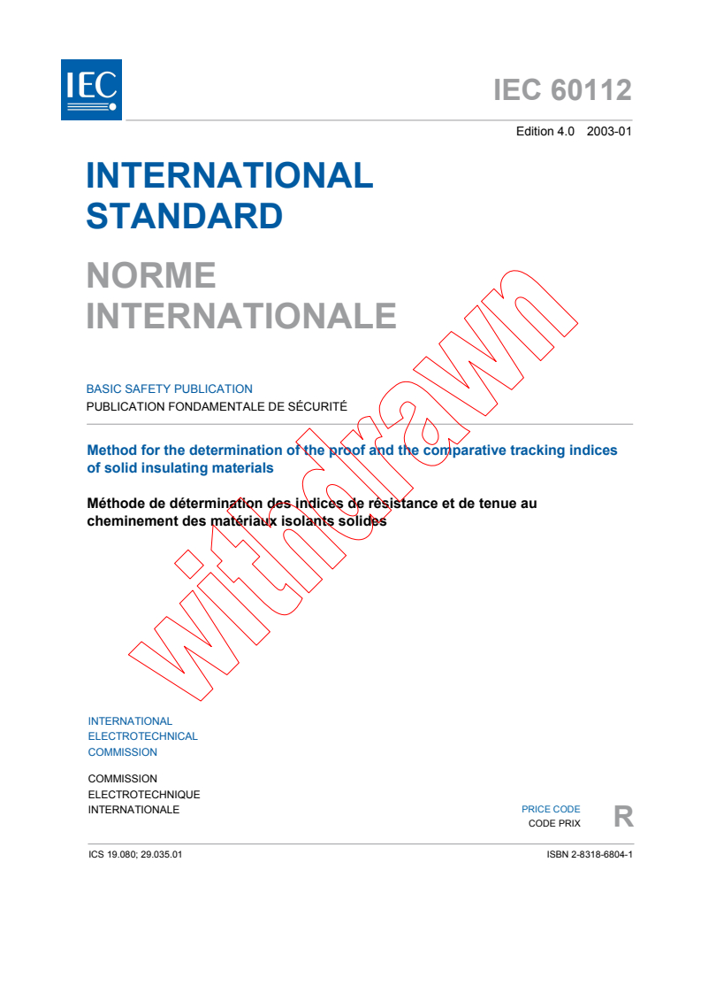 IEC 60112:2003 - Method for the determination of the proof and the comparative tracking indices of solid insulating materials