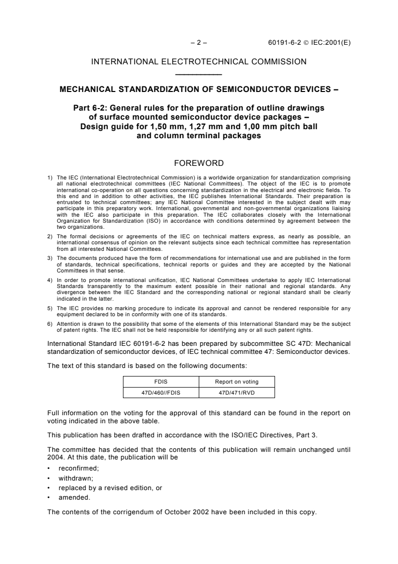 - Normative reference: References the IEC 60191 family (Mechanical standardization of semiconductor devices) and follows IEC/ISO drafting conventions.