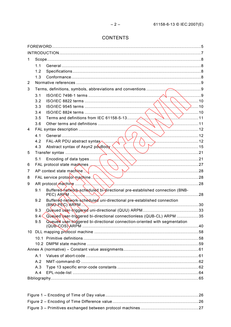 IEC 61158-6-13:2007 is an international standard that defines the Application Layer (FAL) protocol elements for Type 13 fieldbus within industrial communication networks. It supplies the syntax, transfer encodings and protocol machines that let user programs access the fieldbus environment - effectively a “window between corresponding application programs.” The standard addresses both time-critical and non‑time‑critical messaging requirements in automation systems and documents Type 13–specific elements used for reliable application-layer communication.