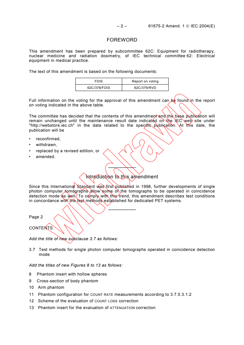 Amendment 1 - Radionuclide imaging devices - Characteristics and test conditions - Part 2: Single photon emission computed tomographs