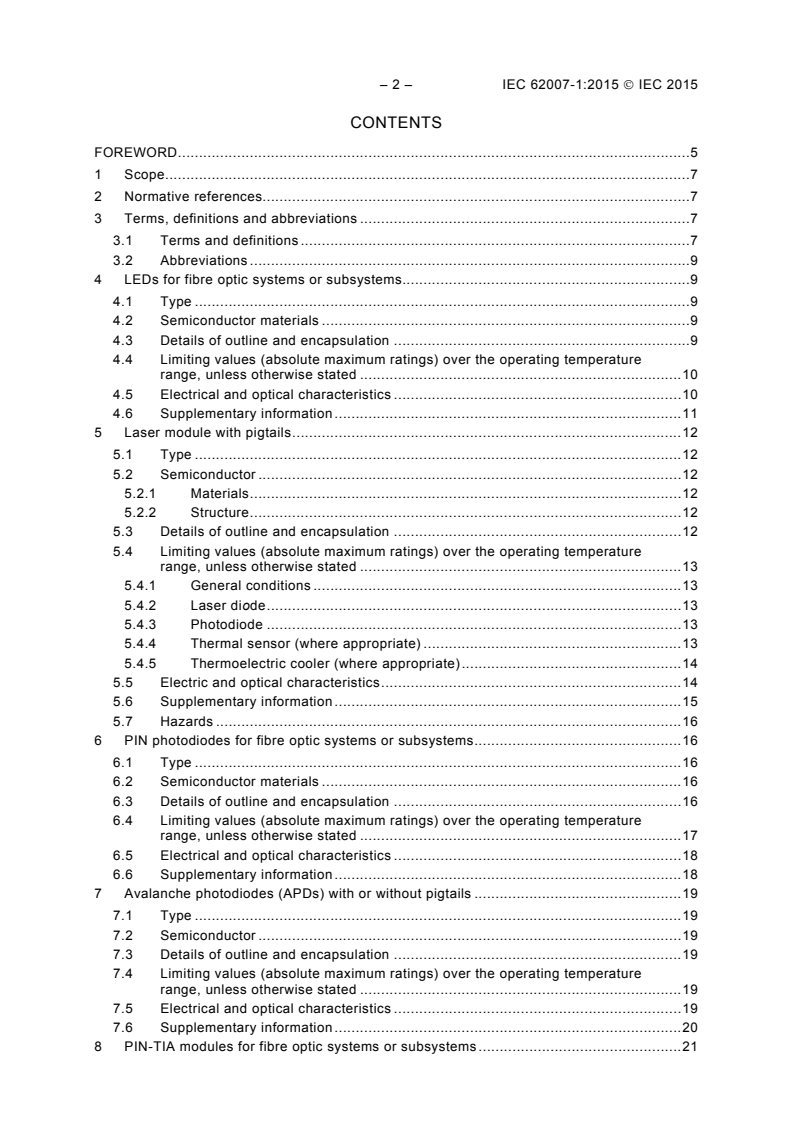 IEC 62007-1:2015 is a specification template for essential ratings and characteristics of the following categories of semiconductor optoelectronic devices to be used in the field of fibre optic systems and subsystems:
