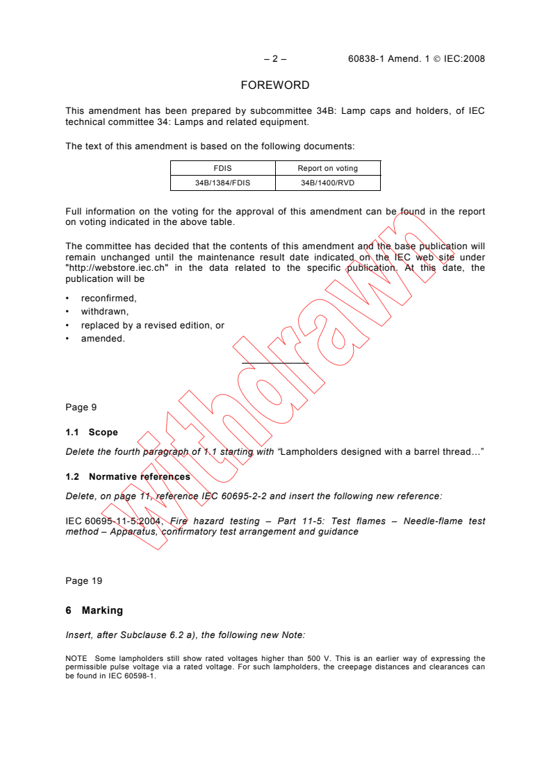This amendment has been prepared by subcommittee 34B: Lamp caps and holders, of IEC