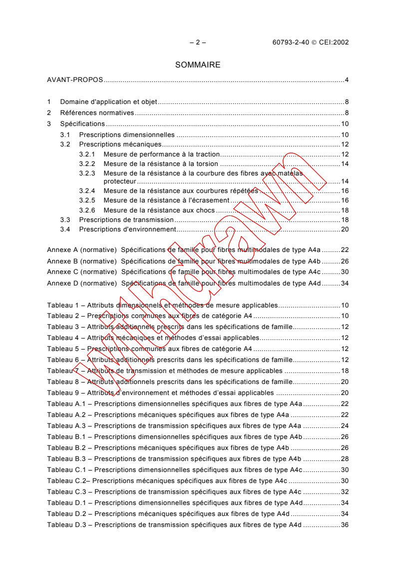 S'applique aux fibres optiques de type A4a, A4b, A4c et A4d. Elle couvre des prescriptions communes aux fibres multimodales de catégorie A4. Elle couvre aussi des prescriptions particulières applicables à des types particuliers de fibres et à des applications données.