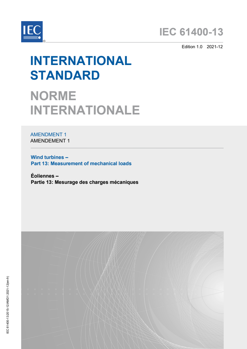 Keywords: IEC 61400-13 amendment, wind turbines mechanical load measurement, load uncertainty evaluation, wind turbine calibration procedures, IEC wind energy standards, wind turbine certification, mechanical load testing, wind turbine design verification.