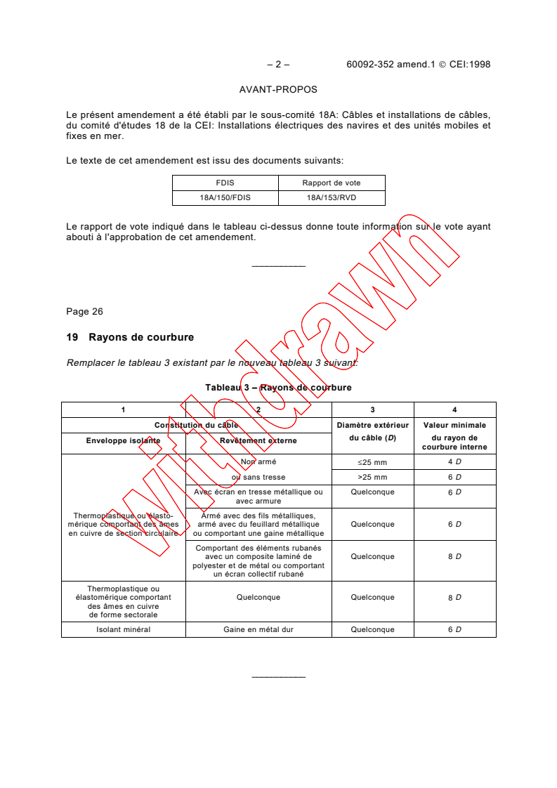 Amendement 1 - Installations électriques à bord des navires - Partie 352: Choix et pose des câbles pour réseaux d'alimentation à basse tension