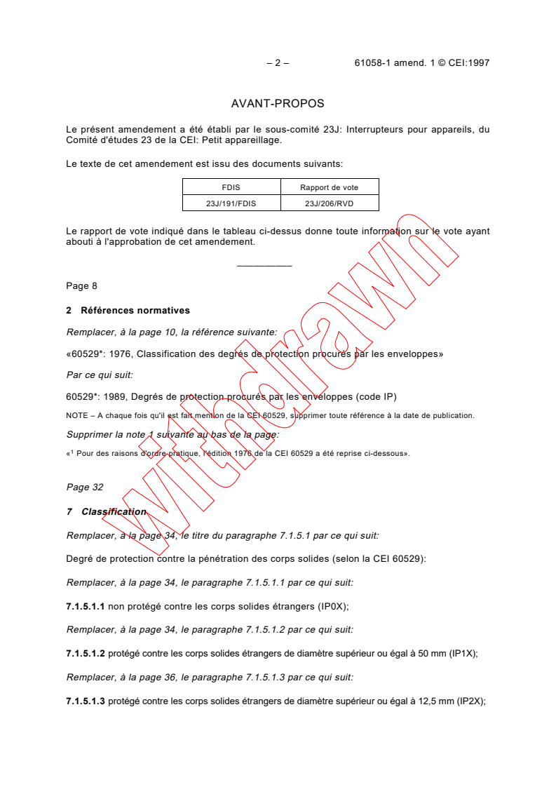 Le présent amendement a été établi par le sous-comité 23J: Interrupteurs pour appareils, du