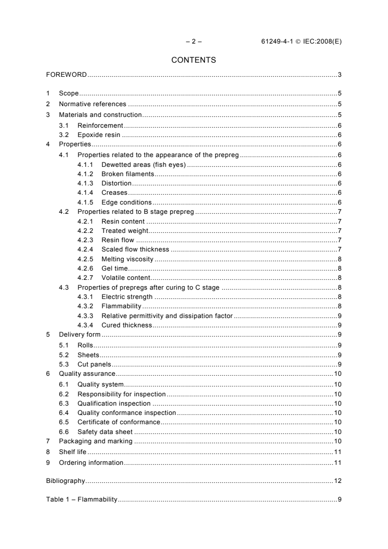 Keywords: IEC 61249-4-1, epoxide woven E‑glass prepreg, prepreg materials, multilayer boards, defined flammability, vertical burning test, glass transition temperature, resin content, resin flow, PCB materials standard.