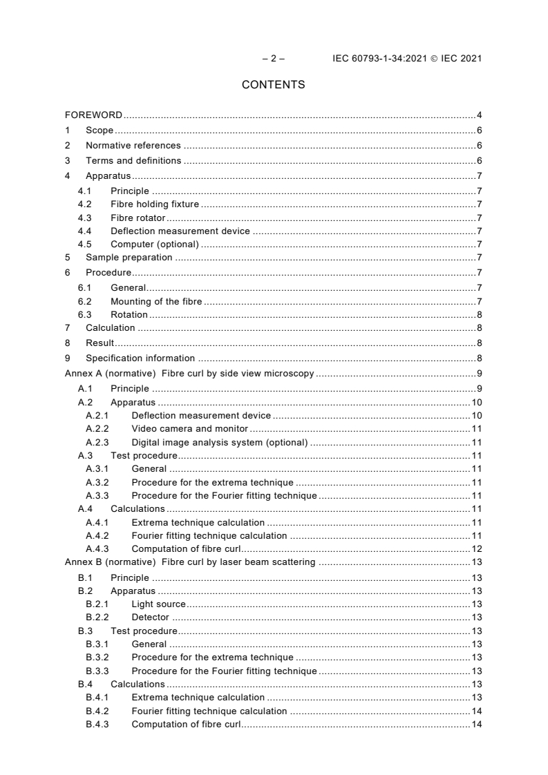 Keywords: IEC 60793-1-34:2021, optical fibre, fibre curl, measurement methods, side view microscopy, laser beam scattering, splice loss, radius of curvature, fusion splicer, uncoated optical fibres.