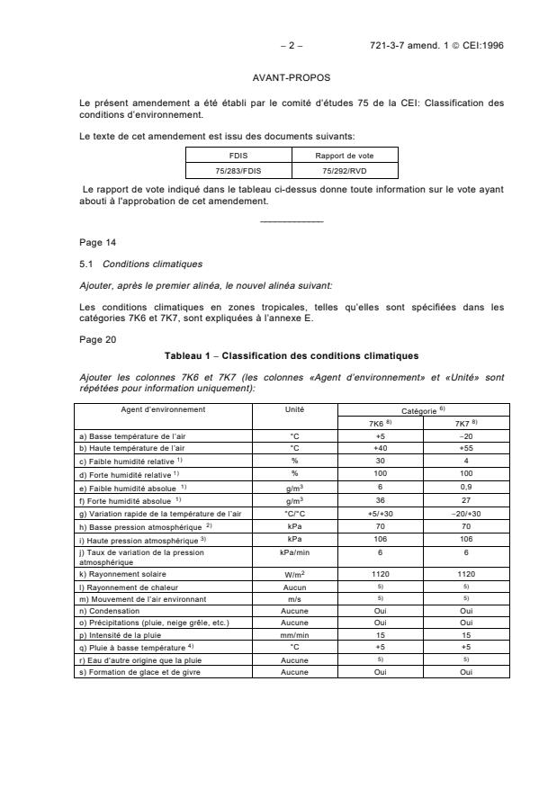 This amendment has been prepared by IEC technical committee 75: Classification of environ-