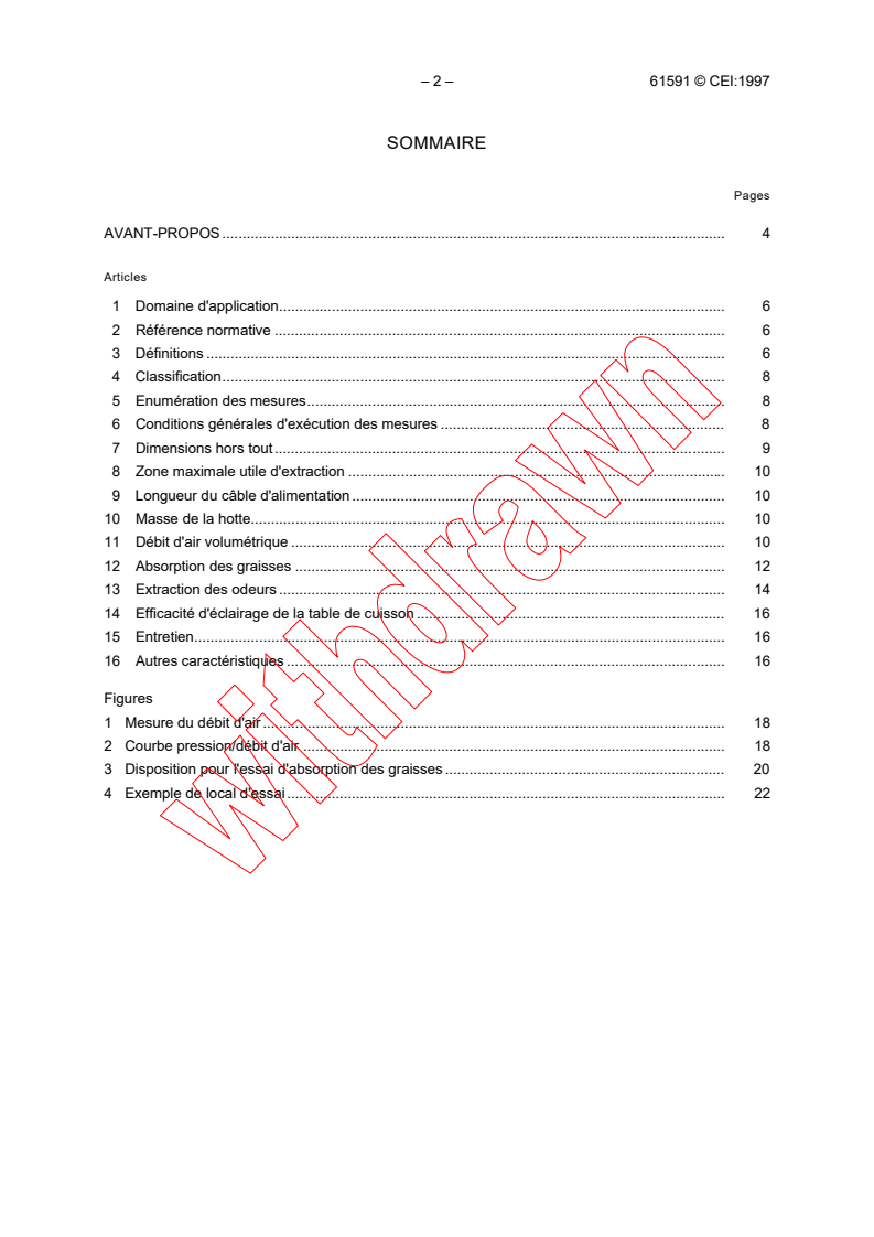 IEC 61591:1997 is a standard published by the International Electrotechnical Commission (IEC). Its full title is "Household range hoods - Methods for measuring performance". This standard covers: Applies to range hoods incorporating a fan for the recirculation or forced removal of air from above a hob situated in a household kitchen. The standard defines the mainperformance characteristics of range hoods, and methods of measurement.