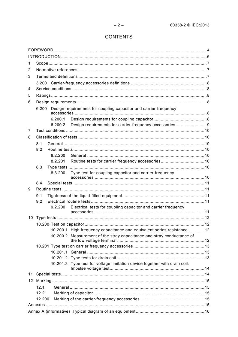 IEC 60358-2:2013 is an international standard published by the International Electrotechnical Commission (IEC) that specifies requirements for AC or DC single-phase coupling capacitors used in power line carrier-frequency (PLC) applications. This standard applies to coupling capacitors rated above 1,000 volts, connected between line and ground. It covers capacitors designed for frequencies ranging from 30 kHz to 500 kHz for PLC systems, as well as similar DC or AC applications at power frequencies between 15 Hz and 60 Hz.