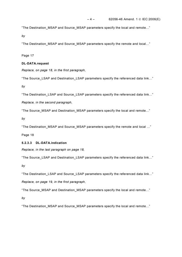 This amendment advances the IEC 62056-46 standard by refining technical details critical to efficient and interoperable electricity metering communications. It is essential for professionals involved in smart grid development, meter manufacturer designs, telecom engineers in utility sectors, and standards compliance specialists to stay updated with these amendments to ensure system compatibility and performance excellence.