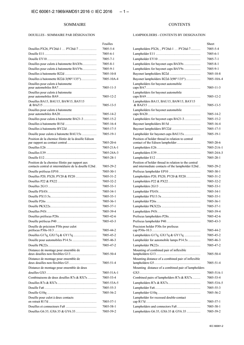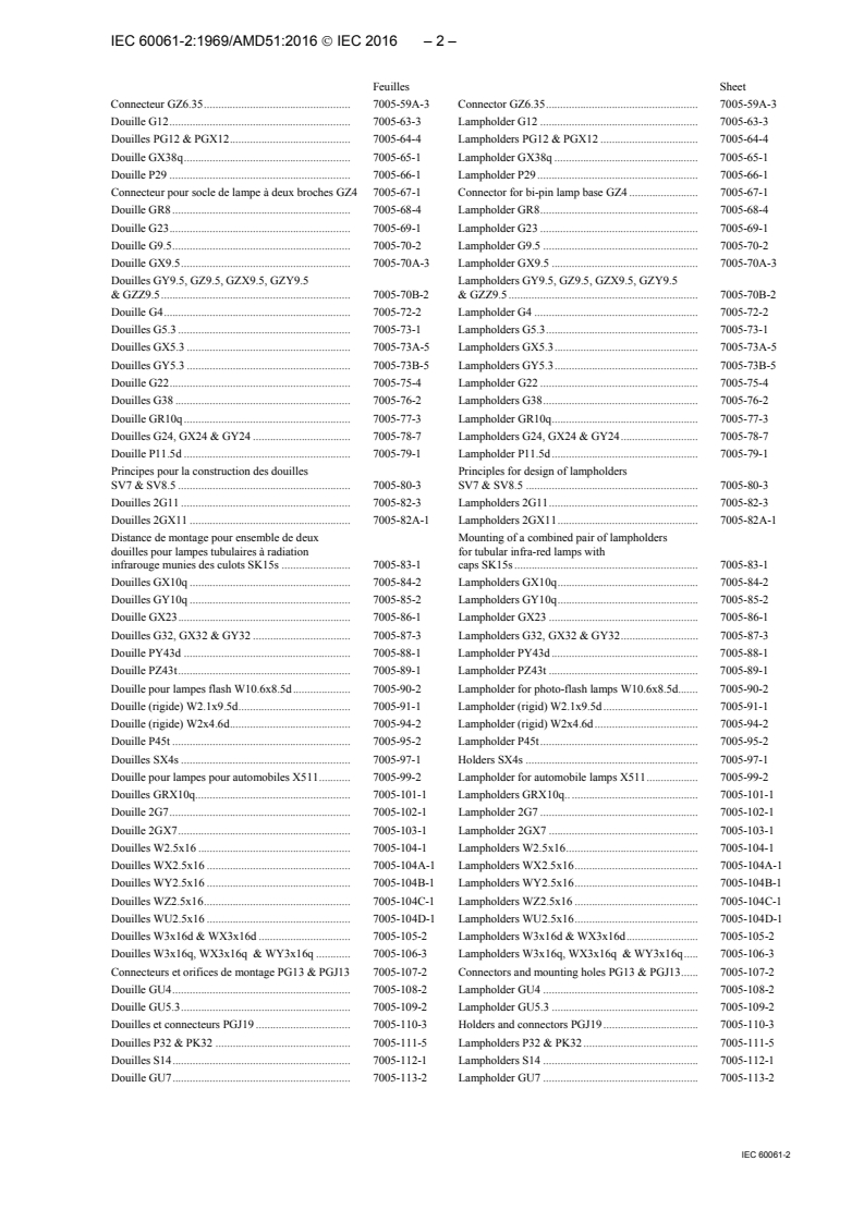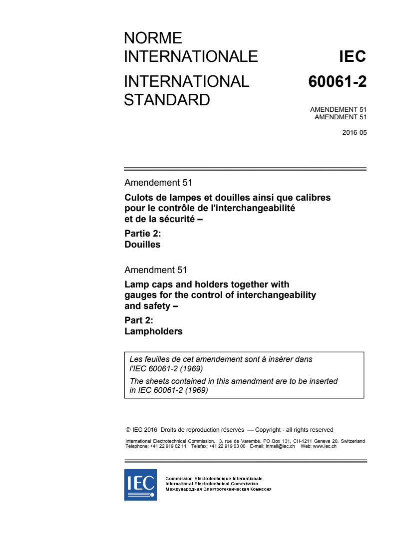 Amendement 51 - Culots de lampes et douilles ainsi que calibres pour le contrôle de l'interchangeabilité et de la sécurité - Partie 2: Douilles