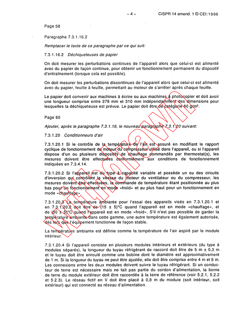 Amendement 1 - Limites et méthodes de mesure des perturbations radioélectriques produites par les appareils électrodomestiques ou analogues comportant des moteurs ou des dispositifs thermiques, par les outils électriques et par les appareils électriques analogues