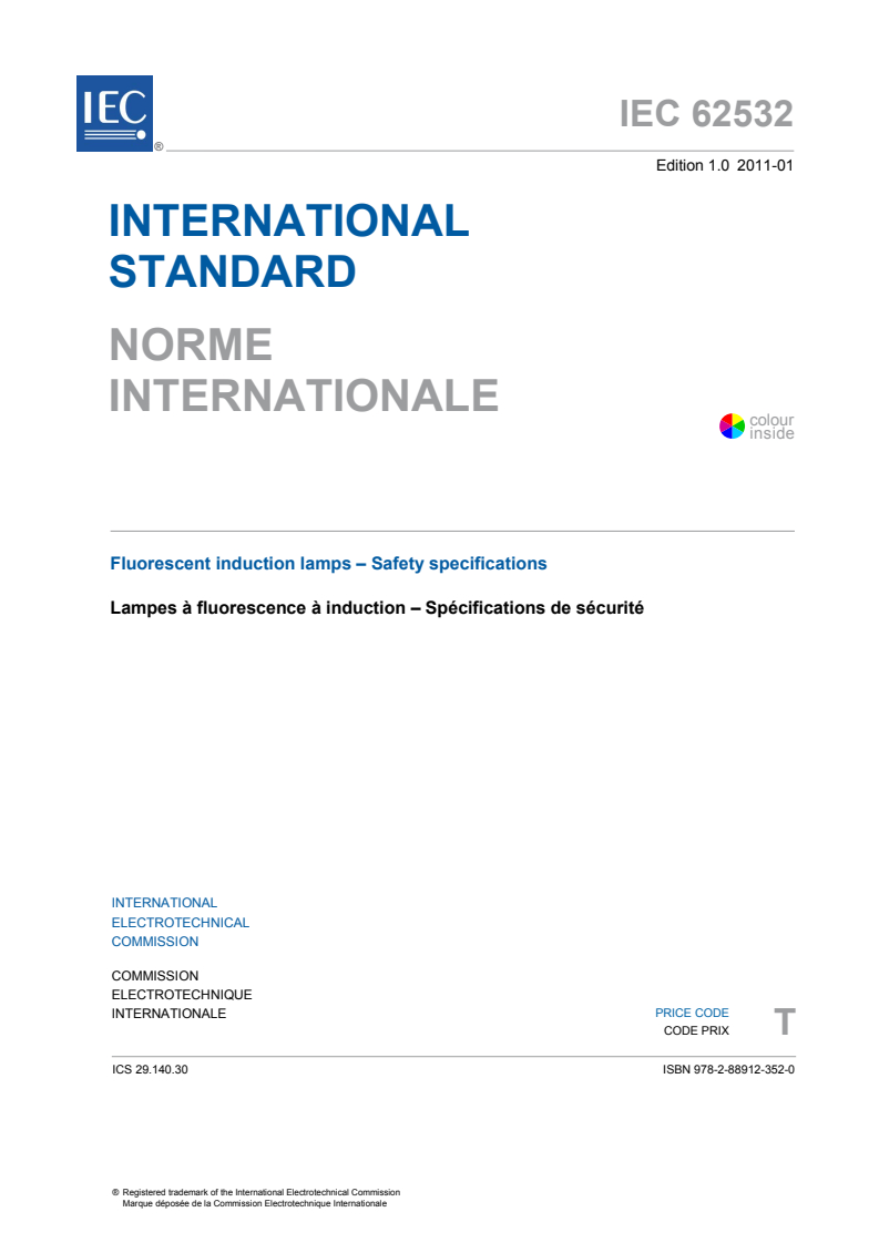 IEC 62532:2011 - Fluorescent induction lamps - Safety specifications Released:1/31/2011