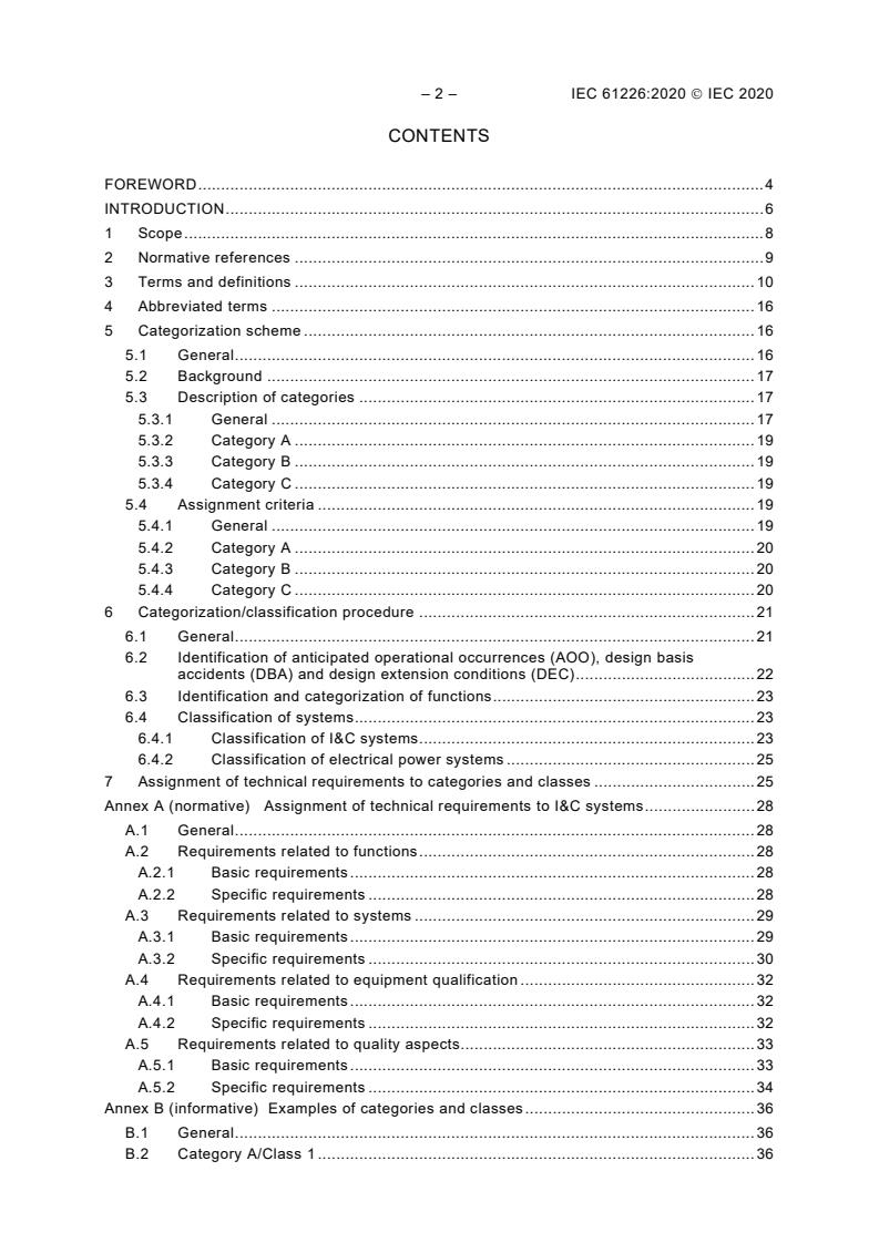 IEC 61226:2020 is a standard published by the International Electrotechnical Commission (IEC). Its full title is "Nuclear power plants - Instrumentation, control and electrical power systems important to safety - Categorization of functions and classification of systems". This standard covers: IEC 61226:2020 establishes, for nuclear power plants , a method of assignment of the functions specified for the plant into categories according to their importance to safety. Subsequent classification of the I&C and electrical power systems performing or supporting these functions, based on the assigned category, then determines relevant design criteria. The design criteria, when applied, ensure the achievement of each function in accordance to its importance to safety. In this document, the criteria are those of functionality, reliability, performance, environmental qualification (e.g. seismic) and quality assurance (QA). This edition includes the following significant technical changes with respect to the previous edition: - to align on IAEA requirements, recommendations and terminology, particularly to take into account the replacement of NS-R-1 by SSR 2/1 and publication of SSG 30; - to extend the scope to electrical power systems; - to move the detailed requirements applying to functions and I&C systems to a normative annex, which will be removed after updating IEC 61513.