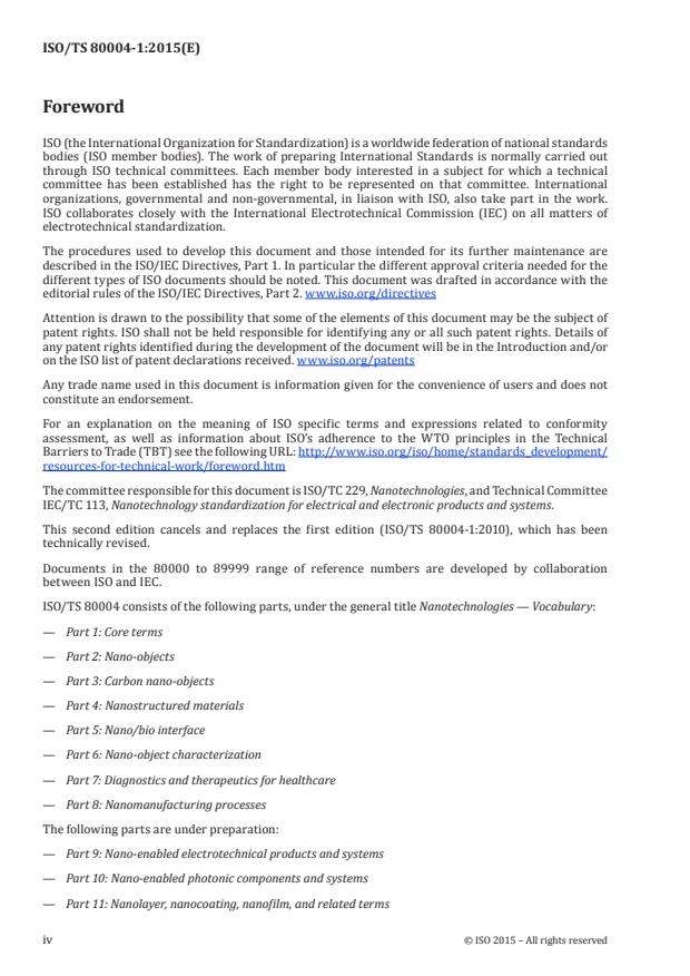 ISO/TS 80004 consists of the following parts, under the general title Nanotechnologies — Vocabulary: