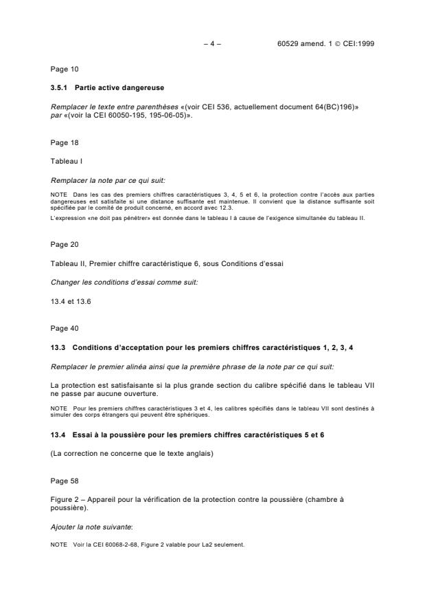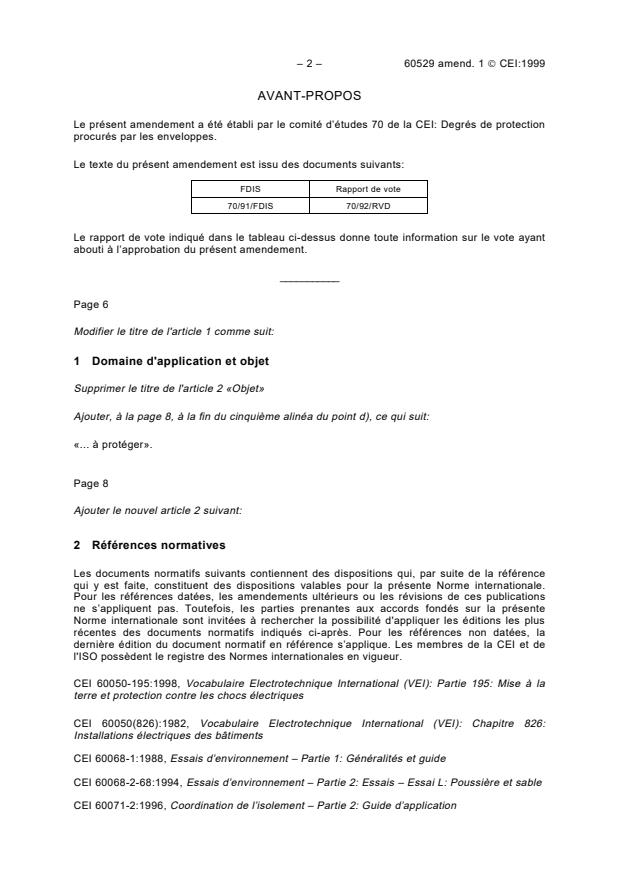 Amendement 1 - Degrés de protection procurés par les enveloppes (Code IP)