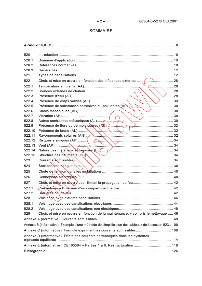 IEC 60364-5-52:2001 - Installations électriques des bâtiments - Partie 5-52: Choix et mise en oeuvre des matériels électriques - Canalisations Released:8/20/2001