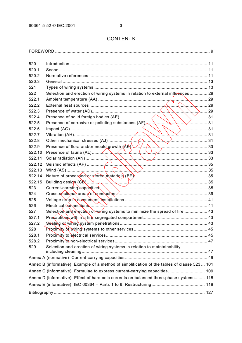 Keywords: IEC 60364-5-52:2001, wiring systems, electrical installations of buildings, current‑carrying capacities, conductor sizing, voltage drop, selection and erection.