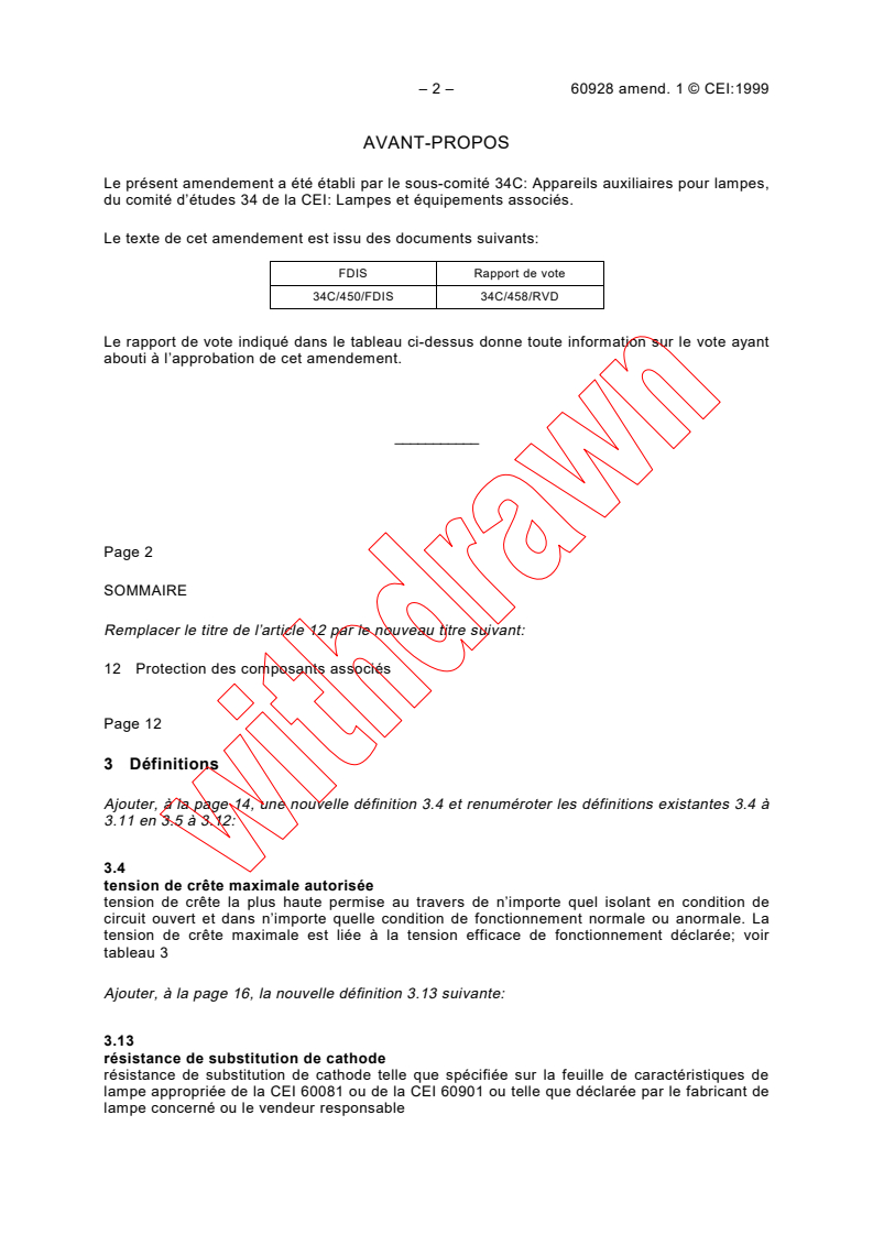 This amendment has been prepared by subcommittee 34C: Auxiliaries for lamps, of IEC