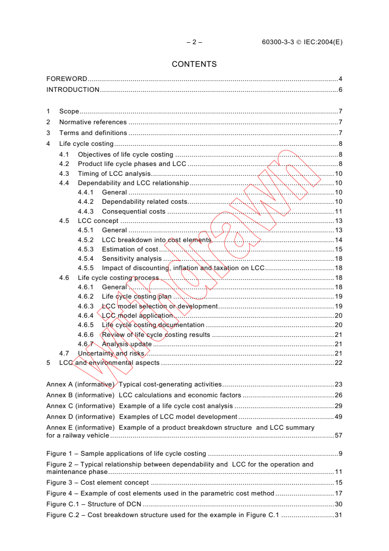 IEC 60300-3-3:2004 is a standard published by the International Electrotechnical Commission (IEC). Its full title is "Dependability management - Part 3-3: Application guide - Life cycle costing". This standard covers: This part of IEC 60300 provides a general introduction to the concept of life cycle costing and covers all applications. This standard is intended for general application by both customers (users) and suppliers of products. It explains the purpose and value of life cycle costing and outlines the general approaches involved. It also identifies typical life cycle cost elements to facilitate project and programme planning.