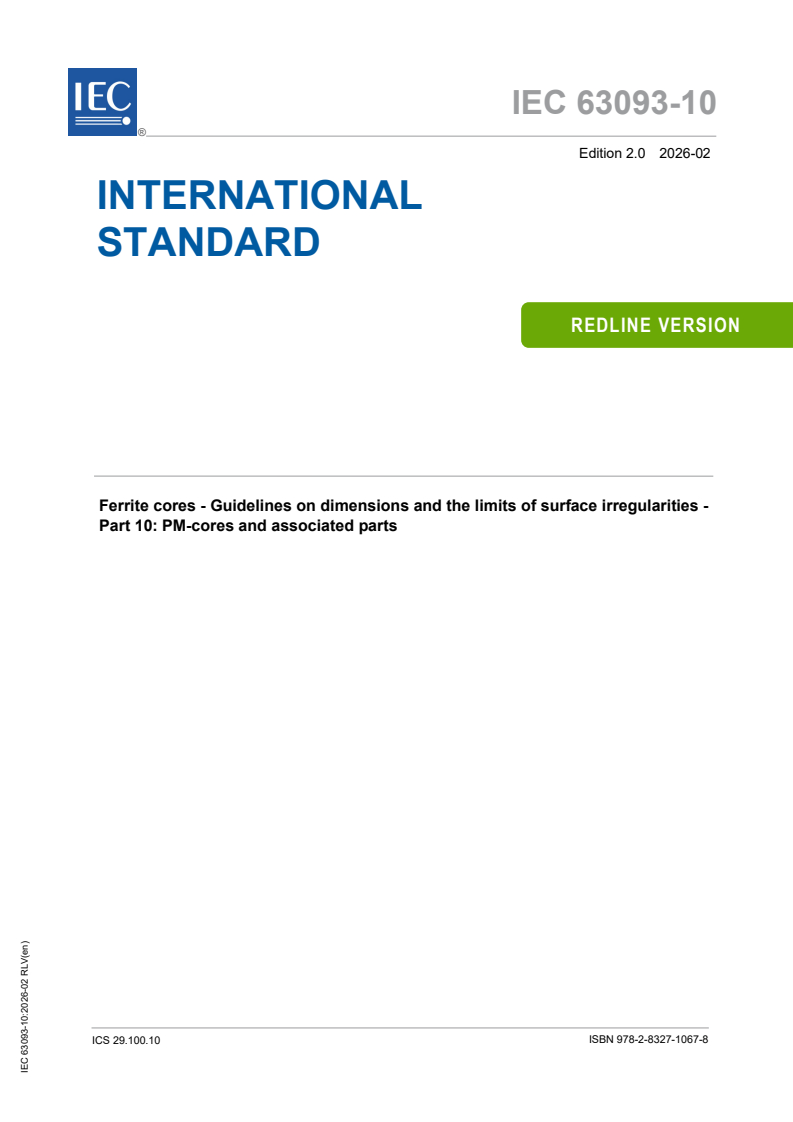 REDLINE IEC 63093-10:2026 RLV - Ferrite cores - Guidelines on dimensions and the limits of surface irregularities - Part 10: PM-cores and associated parts/6/2026