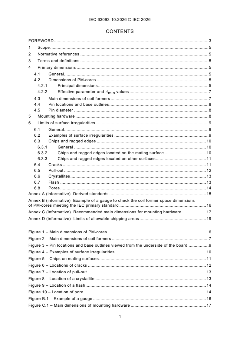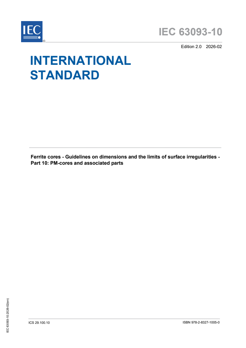 IEC 63093-10:2026 - Ferrite cores - Guidelines on dimensions and the limits of surface irregularities - Part 10: PM-cores and associated parts/6/2026