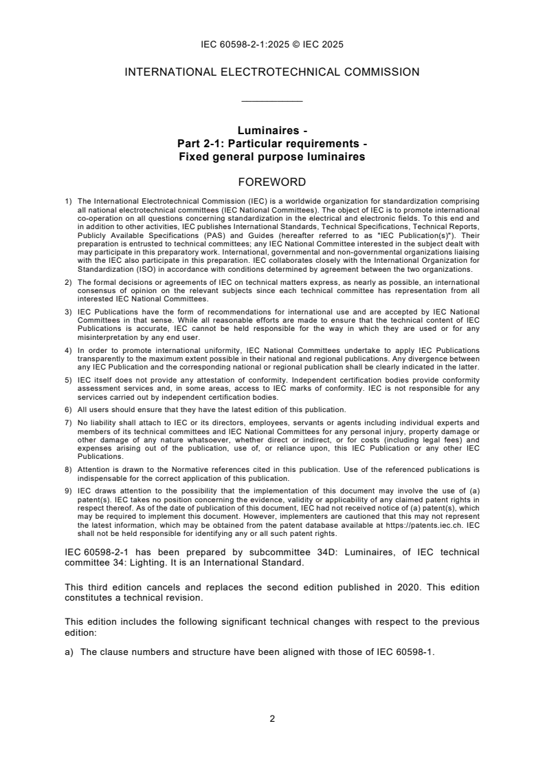 IEC 60598-2-1:2025 - Luminaires - Part 2-1: Particular requirements - Fixed general purpose luminaires Released:2. 12. 2025 Isbn:9782832708385