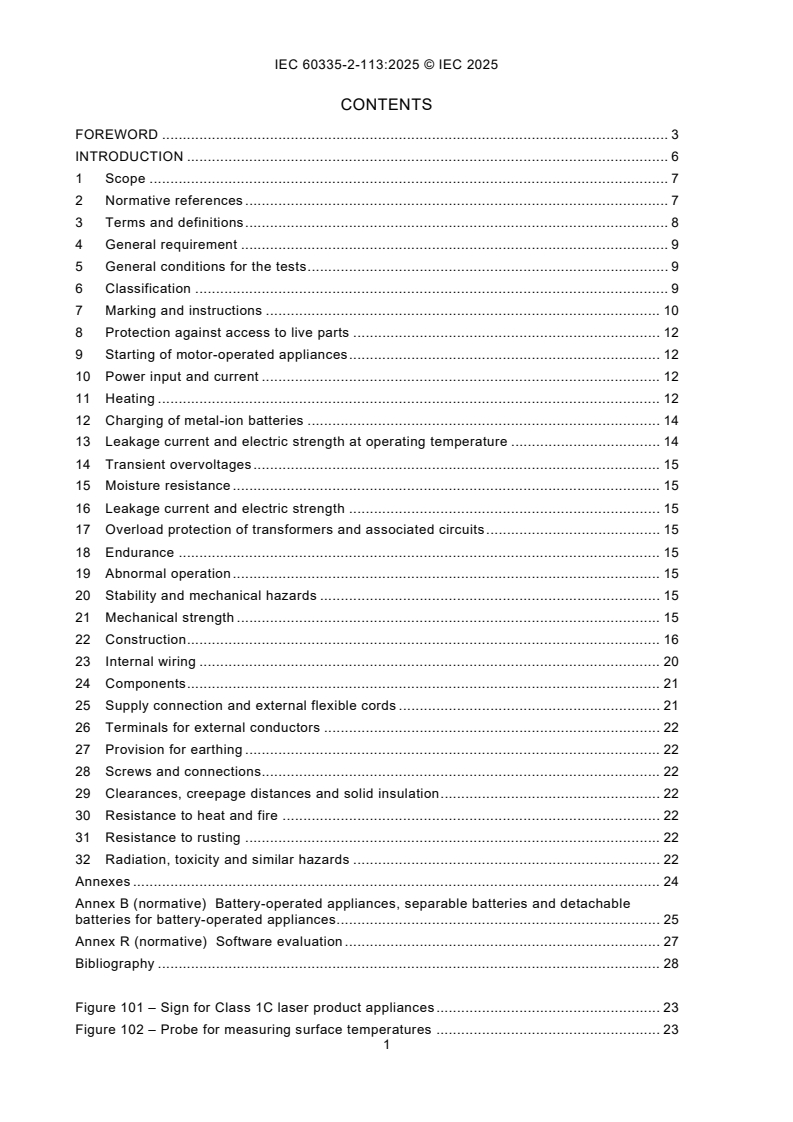 IEC 60335-2-113:2025 deals with the safety of beauty care appliances incorporating lasers or intense light sources for household and similar purposes, where their operation relies on contact with the skin, their rated voltage being not more than 250 V including direct current (DC) supplied appliances and battery-operated appliances. This standard covers appliances with a light emitting surface less than 25 cm2. Appliances with a light emitting surface equal to or greater than 25 cm2 are within the scope of IEC 60335-2-27. Appliances not intended for normal household use but which nevertheless can be a source of danger to the public such as appliances intended to be used in beauty salons and similar premises are also within the scope of this standard.