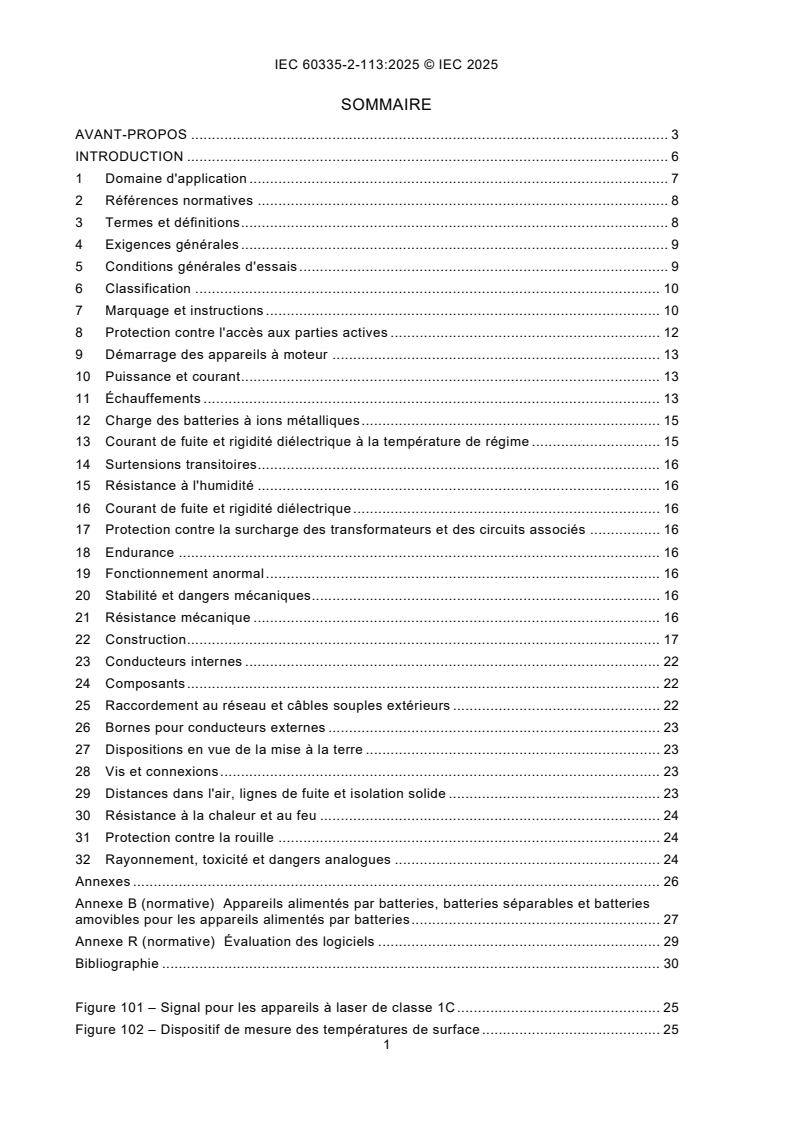 L'IEC 60335-2-113:2025 traite de la sécurité des appareils de soins esthétiques comportant des lasers ou des sources de lumière de forte intensité pour usages domestiques et analogues, dont le fonctionnement dépend du contact avec la peau et dont la tension assignée est inférieure ou égale à 250 V, y compris les appareils alimentés en courant continu et les appareils alimentés par batteries. La présente norme couvre les appareils dont la surface électroluminescente est inférieure à 25 cm2. Les appareils dont la surface électroluminescente est supérieure ou égale à 25 cm2 relèvent du domaine d'application de l'IEC 60335-2-27. Les appareils non destinés à un usage domestique normal, mais qui peuvent néanmoins constituer une source de danger pour le public, tels que les appareils destinés à être utilisés dans des salons de beauté et locaux analogues, sont également compris dans le domaine d'application de la présente norme.