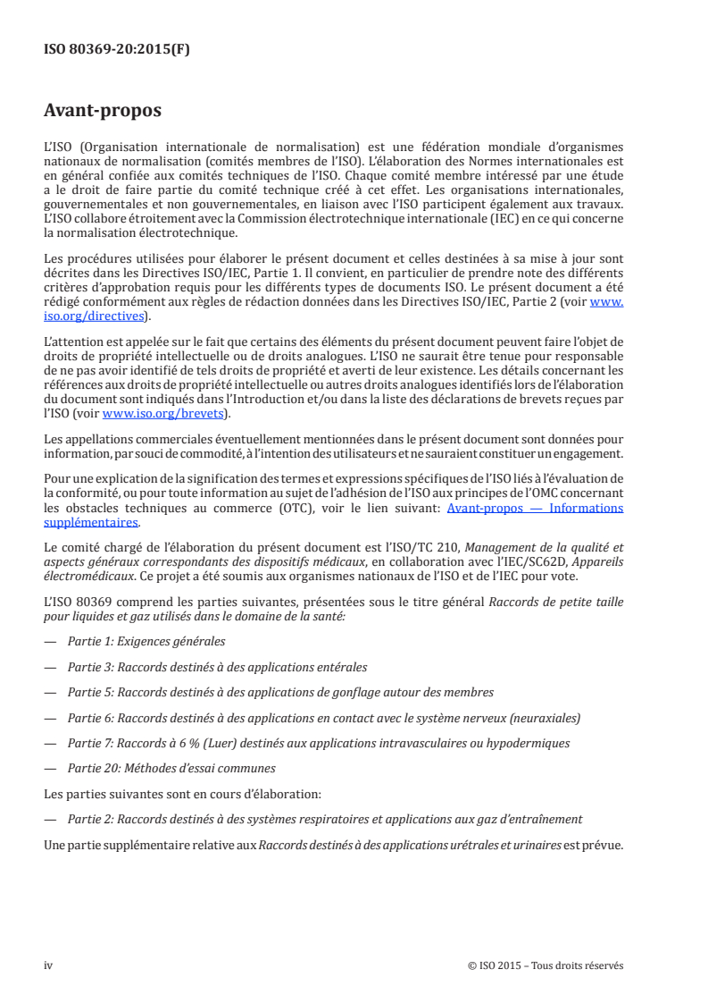 ISO 80369-20:2015 - Raccords de petite taille pour liquides et gaz utilisés dans le domaine de la santé -Partie 20: Méthodes d essai communes Released:5/15/2015