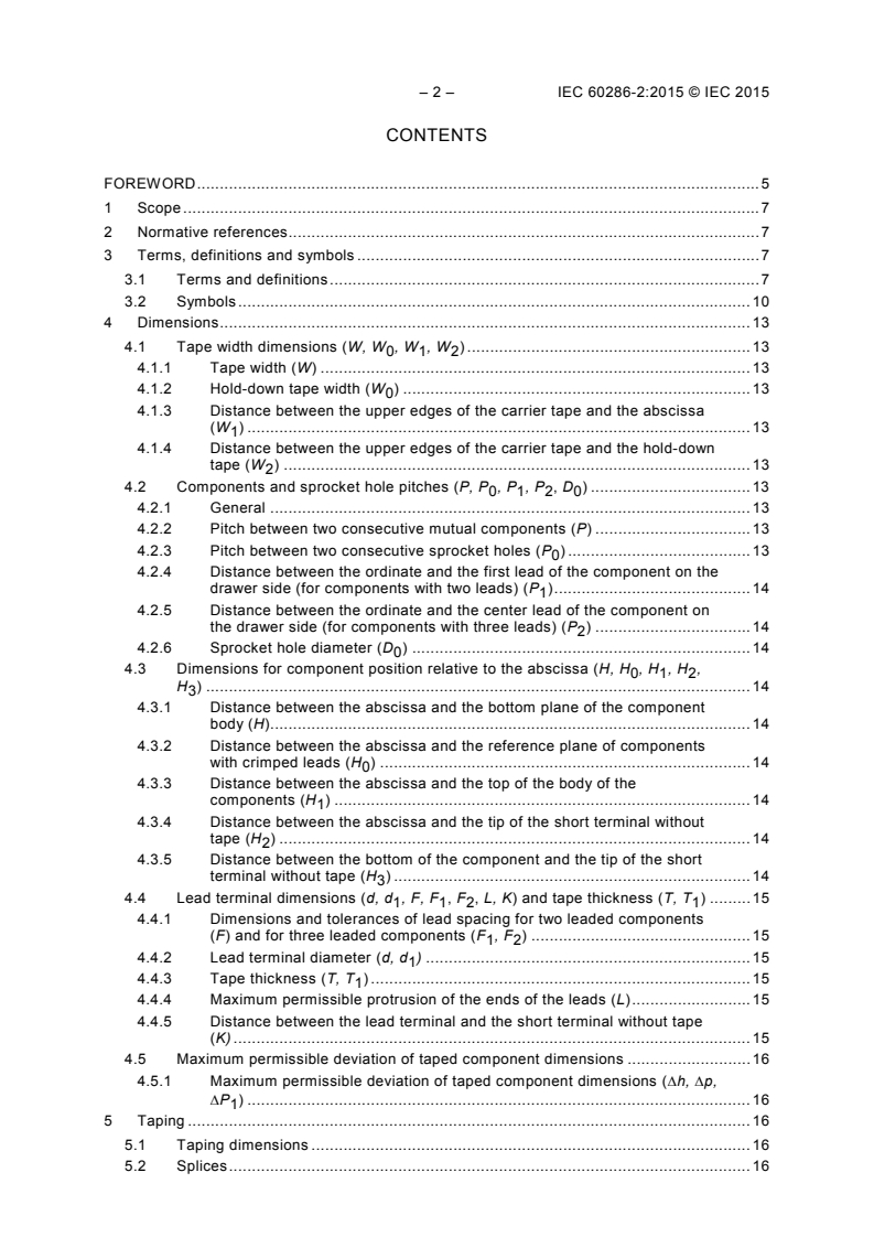 The 2015 edition of IEC 60286-2 introduces a complete revision of its structure, including a clearer layout and detailed overviews of all relevant symbols and references. It also adds annexes documenting known radial tape formats alongside improved illustrative figures, enhancing usability and comprehension for industry professionals.