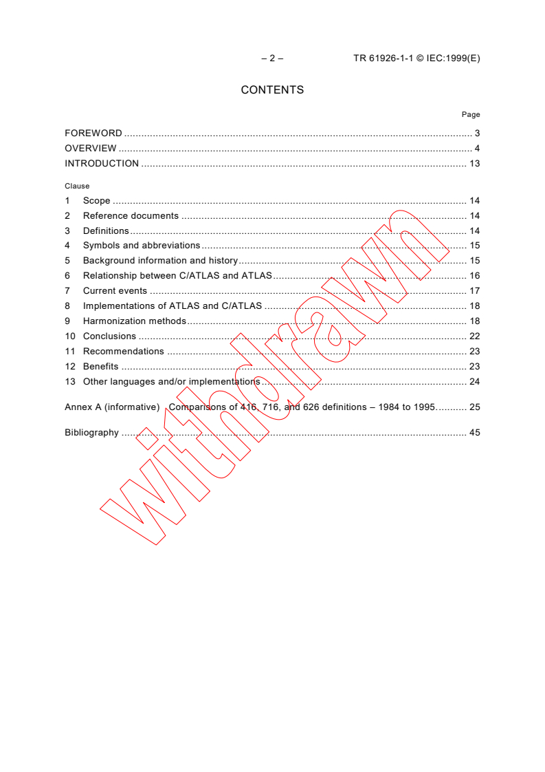 IEC TR 61926-1-1:1999 is a technical report published by the International Electrotechnical Commission (IEC). Its full title is "Design automation - Part 1-1: Harmonization of ATLAS test languages". This standard covers: Addresses the differences between the two published language definitions of the ATLAS language and recommends harmonization and/or convergence of the two standard definitions. To be read in conjunction with IEC 61926-1