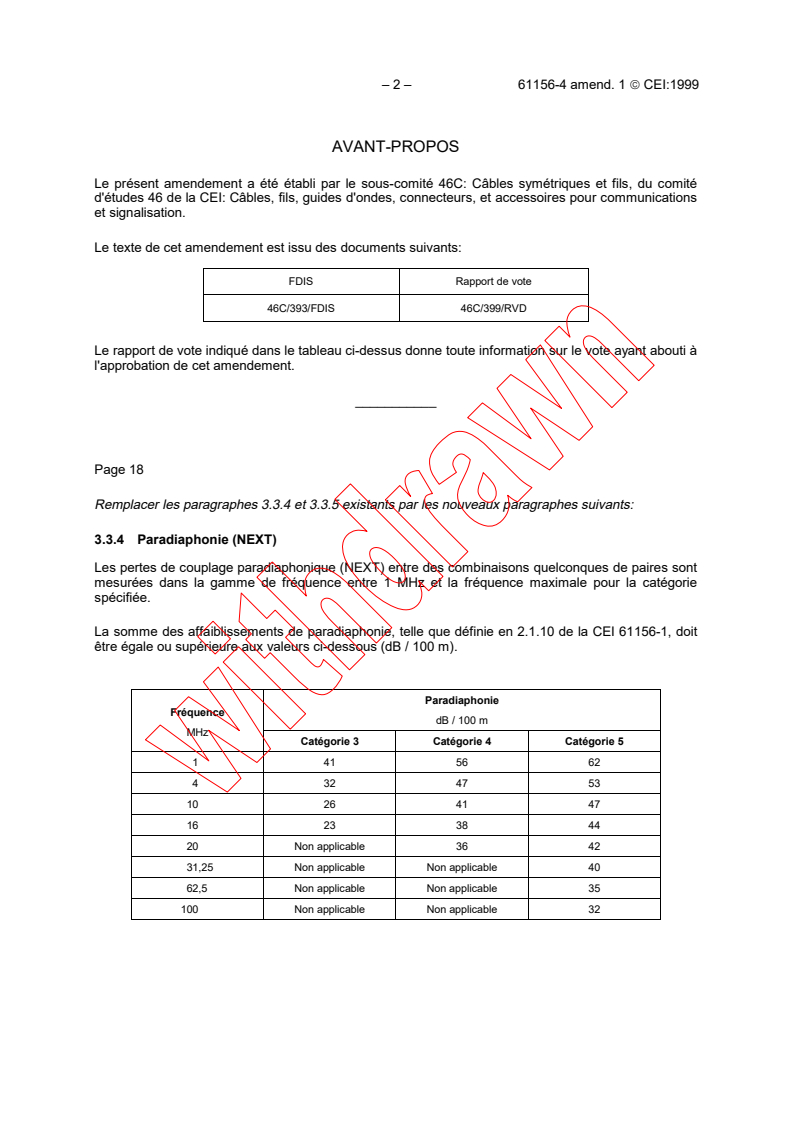 Le présent amendement a été établi par le sous-comité 46C: Câbles symétriques et fils, du comité