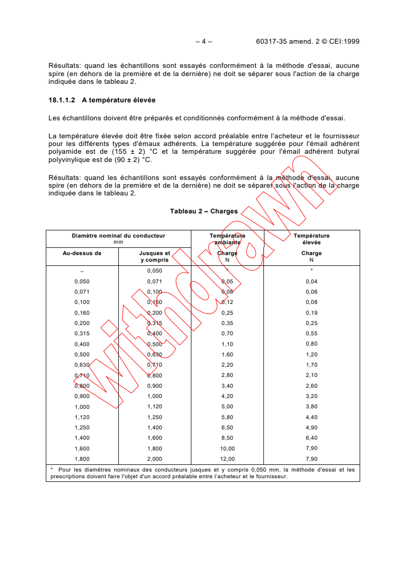 17.3 Diamètres nominaux des conducteurs supérieurs à 0,100 mm