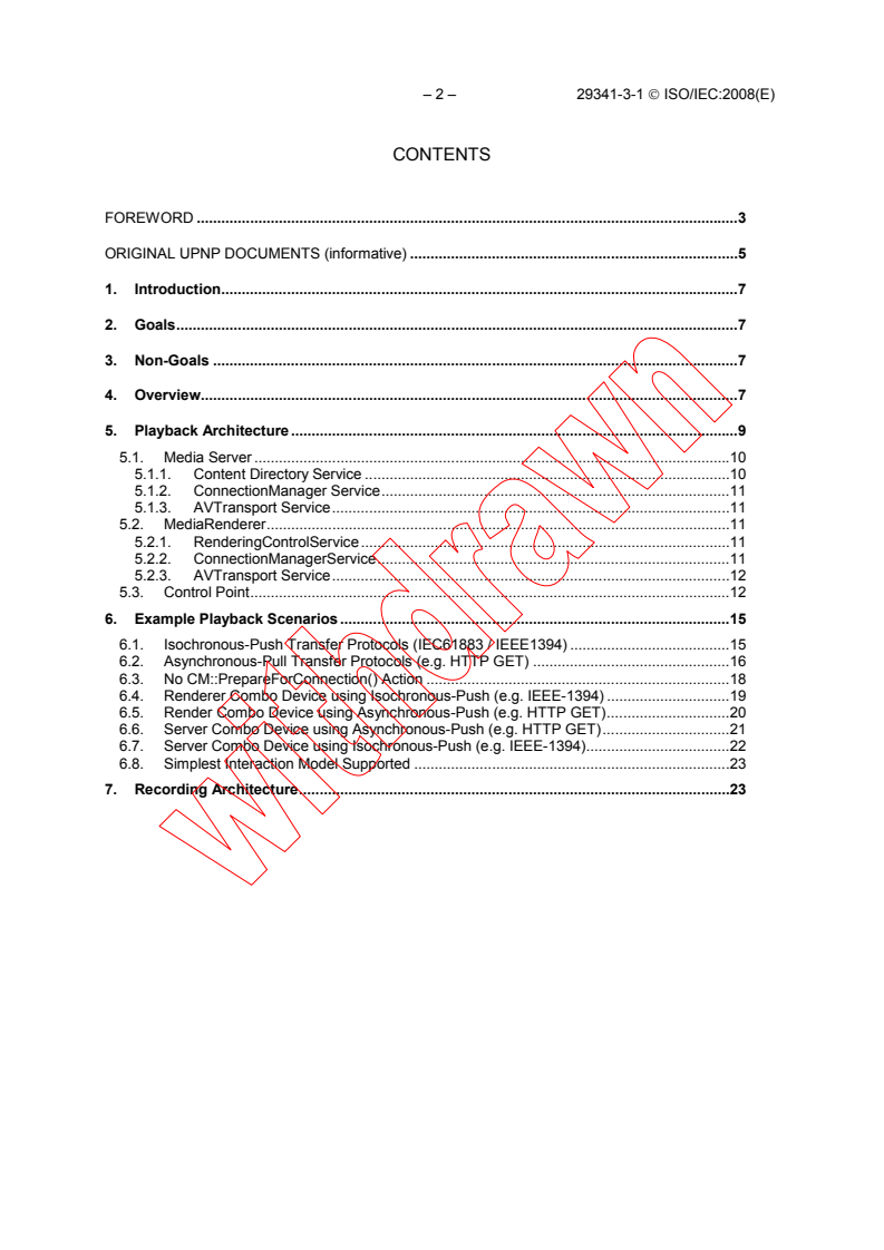 ISO/IEC 29341-3-1:2008(E) describes the overall UPnP AV architecture that forms the foundation for the UPnP AV device and service templates. The series of ISO/IEC 29341 publications defines an architecture for pervasive peer-to-peer network connectivity of intelligent appliances, wireless devices and PCs. It is designed to bring easy to use, flexible, standards-based connectivity to ad-hoc or unmanaged networks whether in the home, in a small business, public spaces or attached to the Internet.