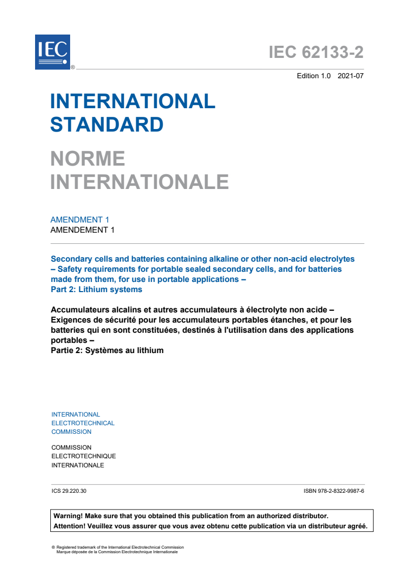 For the latest official and detailed information on IEC 62133-2:2017/AMD1:2021, visit the IEC Webstore or consult authorized IEC distributors.