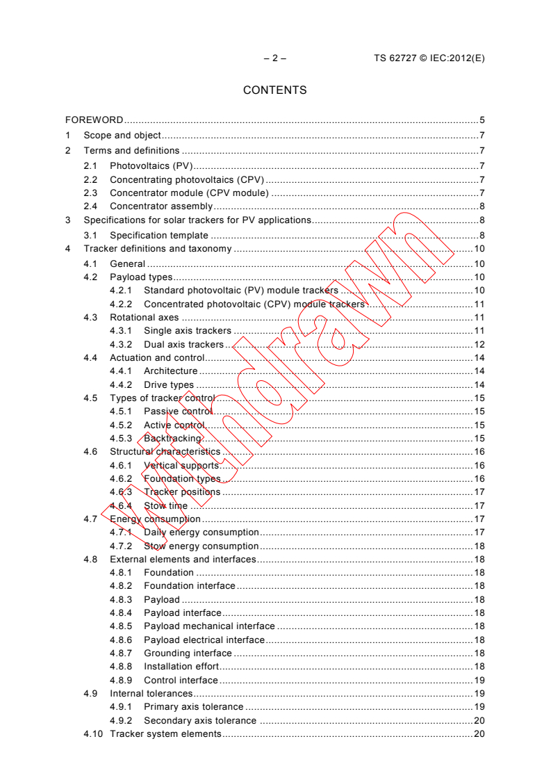 IEC TS 62727:2012 - Photovoltaic systems - Specification for solar trackers