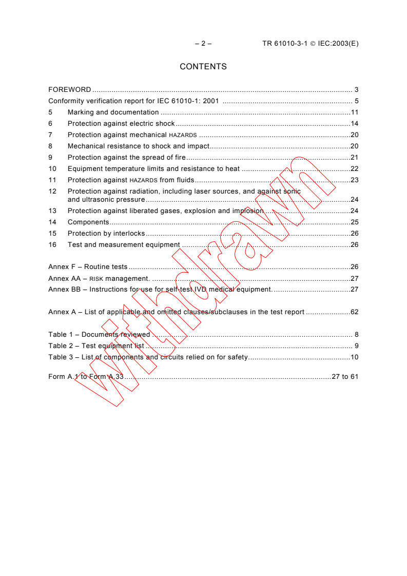 This report is a Technical Report and is of a purely informative nature and is therefore by itself not to be regarded as an International Standard. It is to assist users of the standard with determining and recording verification of conformity of the equipment under test with the requirements of: IEC 61010-1: 2001 2nd edition The protocol for completion of this report is contained in publication IEC 61010-3:2003 2nd edition.